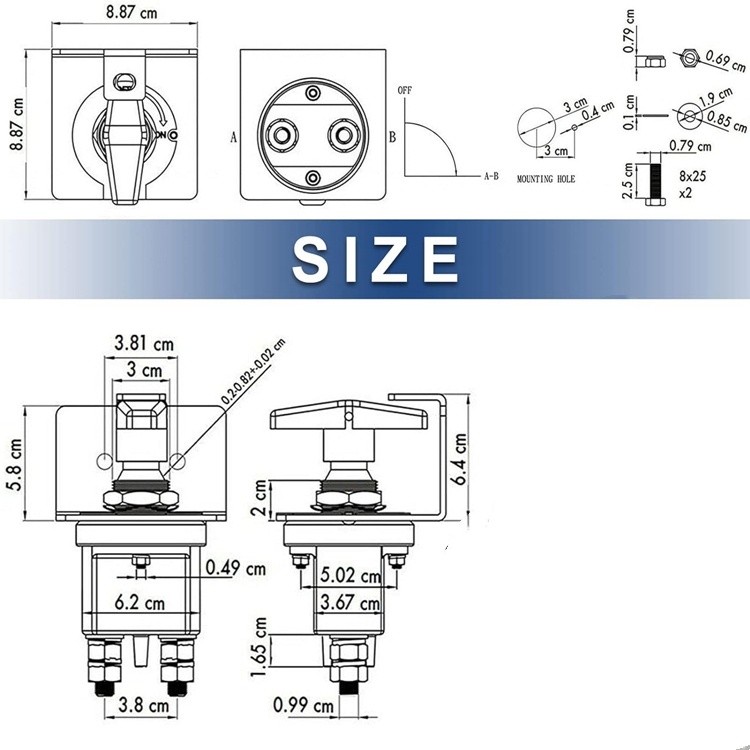 Mục tiêu ứng dụng: Công tắc ngắt kết nối pin nặng được sử dụng rộng rãi trong ô tô, ô tô, thuyền, RV, du thuyền, xe tải và phương tiện xây dựng.